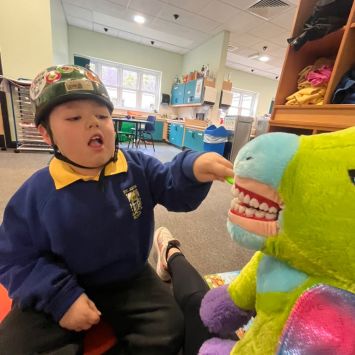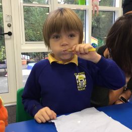 The Pink Flamingos recently received a visit from Public Health. During the visit, they proudly demonstrated how well they care for their teeth and were even able to identify which toothbrush belongs to each individual. The representatives from Public Health were very impressed with their excellent tooth-brushing skills. Well done Flamingos!