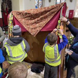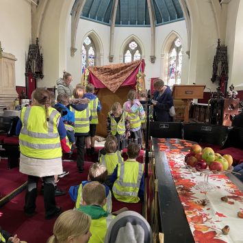 Years 3 and 4 walked to the Methodist Chapel and then across the road to the Royal Chapel St Johns to Experience Harvest.
