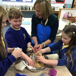 Eco Club made Eco Christmas decorations from natural materials, bird feeders from logs and fir cones, gingerbread stars and candles (using up very old kits found in the deepest darkest corner of the art cupboard).