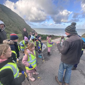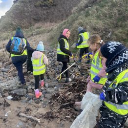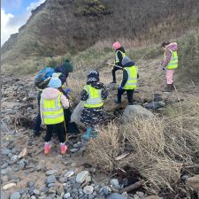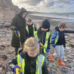 The Shearwaters clean Kirk Michael Beach at Balleira with the support of Bill Dale from Beach Buddies.