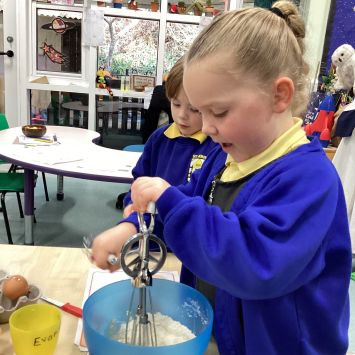 The Robins celebrated Pancake Day a few days early due to Half Term. We helped measure out the ingredients, made the pancake mixture and of course, had to eat the end product. We thought they were delicious!