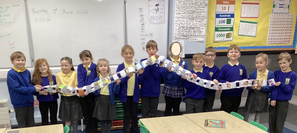 Shearwater class have made a paper chain to display over our reading area inspired by their favourite books. They could redesign the cover, draw their favourite characters, or tell the story of the book.